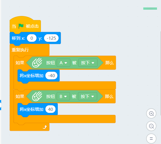 点击小绿旗开始 使用掌控板A B 键 控制